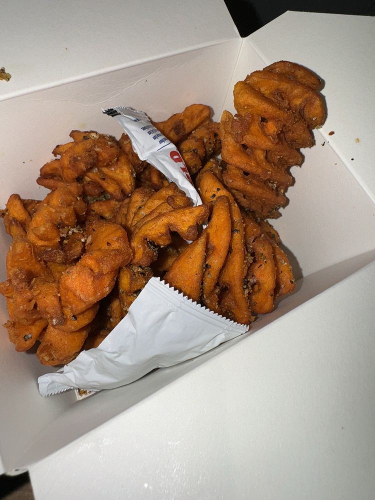 Beyond burger (plant-based) with bell peppers, mushrooms, and crispy onions cooked well & ingrediented with joy, lettuce, love, grilled onion, pickle, tomato and our special top & bottom sauce made in house with a little TLC. Comes with a Bag of Popcorn, an Oreo, and a koolaid jammer! Please let us know of any allergies!
